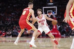 “很明显,火箭今年在组织进攻上会非常依赖申京,这在很大程度上也是无奈之举。我感觉他很有可能打出场均23分、10个篮板、7次助攻的数据。”