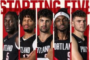赛前开拓者出具首发:霍勒迪+夏普+阿夫迪亚+格兰特+克林根。