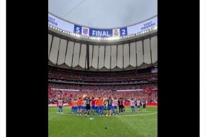 赛后马竞官推放出该队在这场比赛后庆祝胜利的视频,配文:激情!