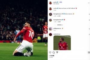 他也在赛后通过社媒晒出自己庆祝时亲吻队徽的照片,并配文:“带我回家,来老特拉福德!”