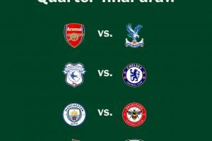 体育资讯10月30日讯 联赛杯第四轮结束对阵,1/4决赛对阵出炉。